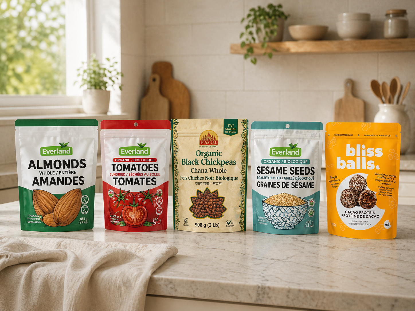 Our facility is QAI-certified organic, and roughly half of it is dedicated to manufacturing our two in-house Canadian brands - Everland Natural Foods and New World Foods - which we make and package right here in Burnaby, without preservatives, artificial flavours, or colours.
